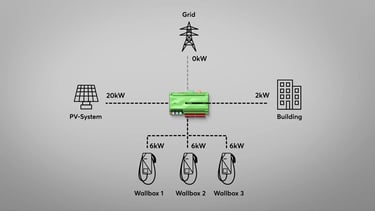 Preden pride do preobremenitve, se moč porabnikov, kot je Wallbox, samodejno zmanjša ali popolnoma izklopi.
