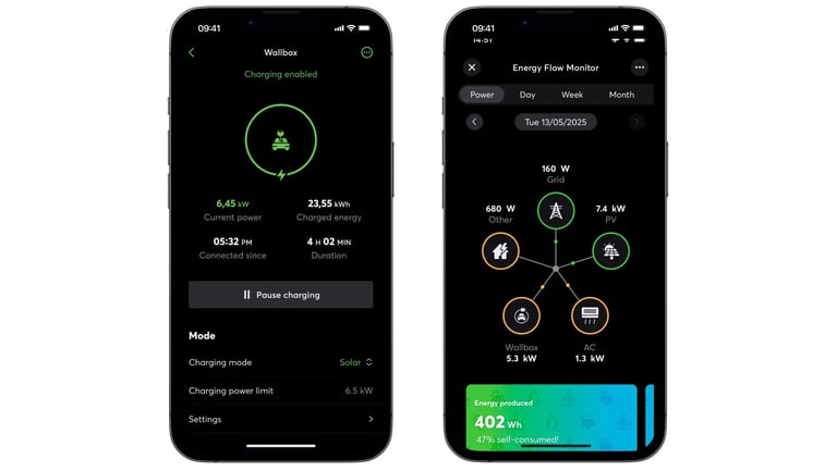 Zaradi samodejnega preklopa med 1-faznim in 3-faznim načinom lahko Wallbox deluje že od 1,38 kW in tako optimalno izkoristi viške iz sončne elektrarne. Ne glede na to, ali je priključena ena ali več polnilnic, se višek energije razporedi na najbolj učinkovit način.