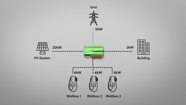 Modul Wallbox Manager porazdeli moč med več polnilnic, tako da ščiti varovalke in celotno električno infrastrukturo.